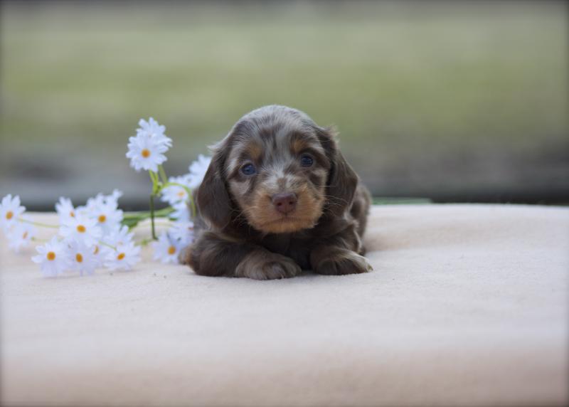 Pretty Chocolate Dapple Girl. 5 weeks old.